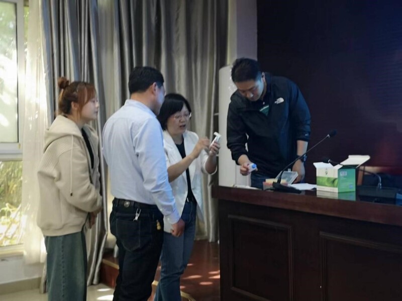 培训会上,刘媛研究员与韩凯主任强调了农产品质量安全的重要性和紧迫性,围绕农药残留检测技术要点进行了详细说明,并与基地新农人开展农药残留胶体金速测检测技术实操培训,在现场进行交流答疑。